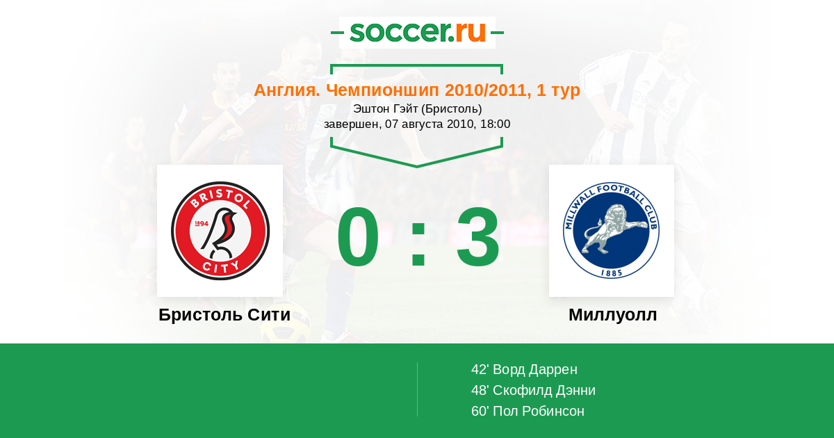 Бристоль Сити - Миллуолл: обзор матча 7 августа 2010