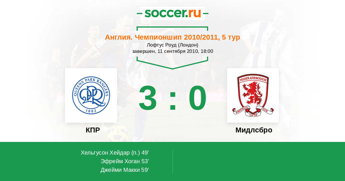 КПР - Мидлсбро: обзор матча 11 сентября 2010