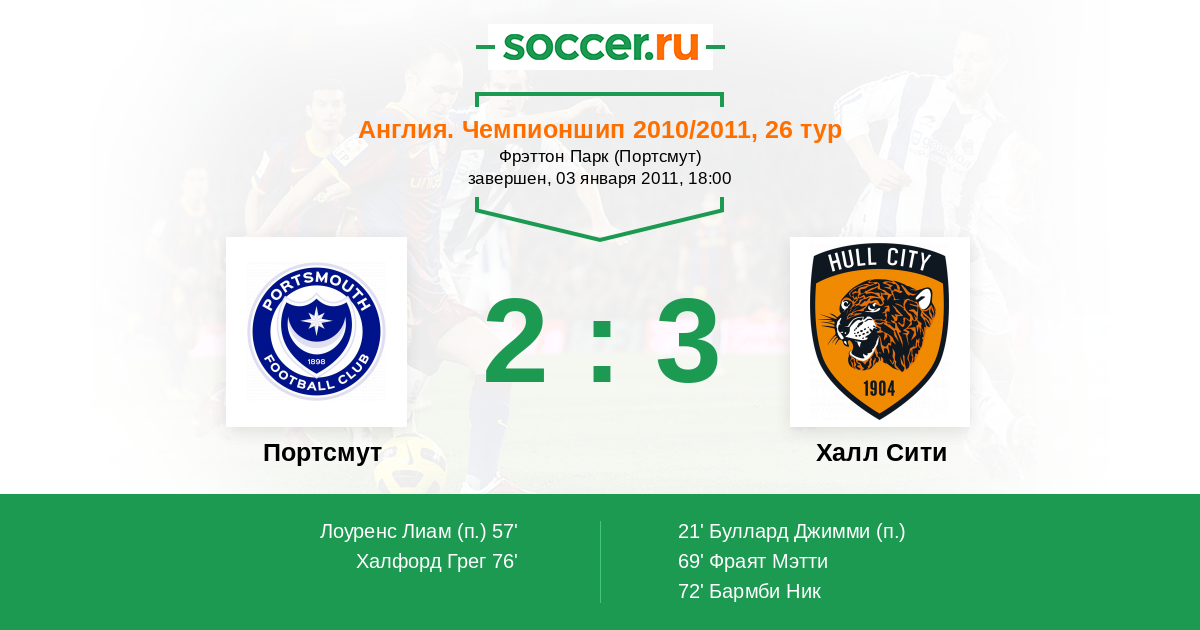 Портсмут - Халл Сити: обзор матча 3 января 2011