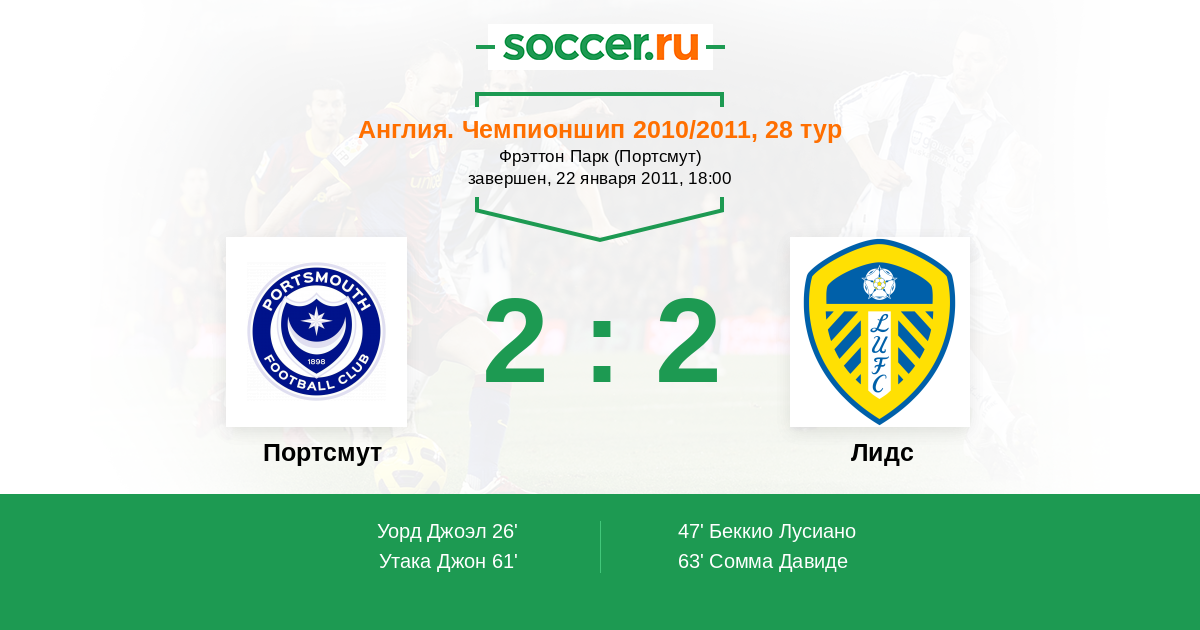 Портсмут - Лидс: обзор матча 22 января 2011