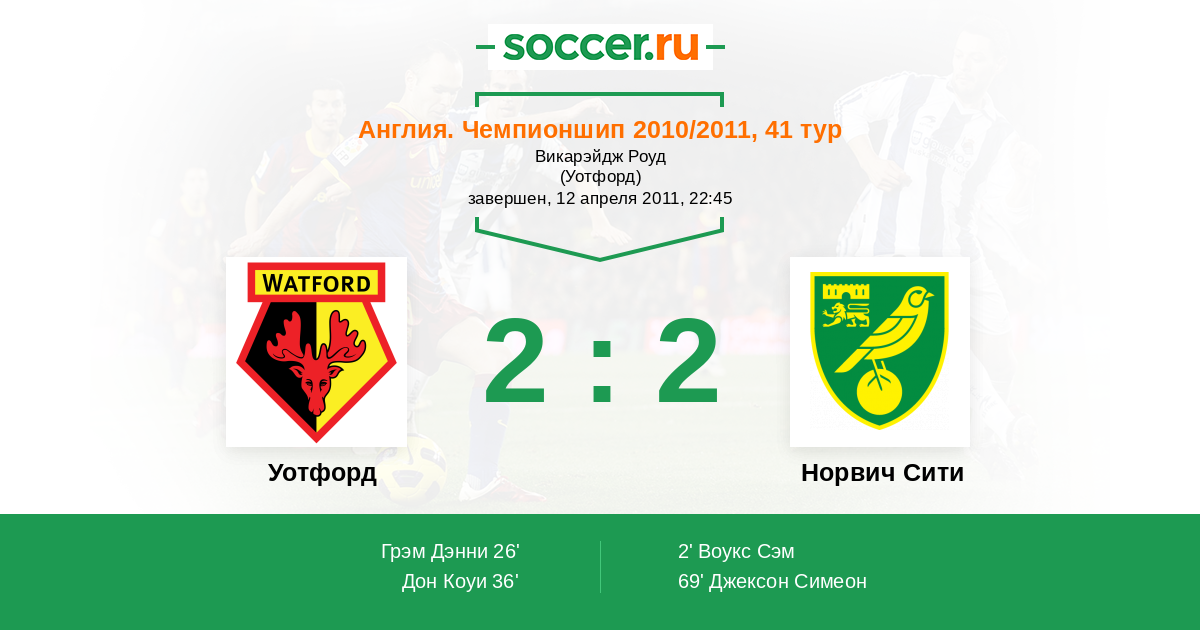 Уотфорд - Норвич Сити: обзор матча 12 апреля 2011