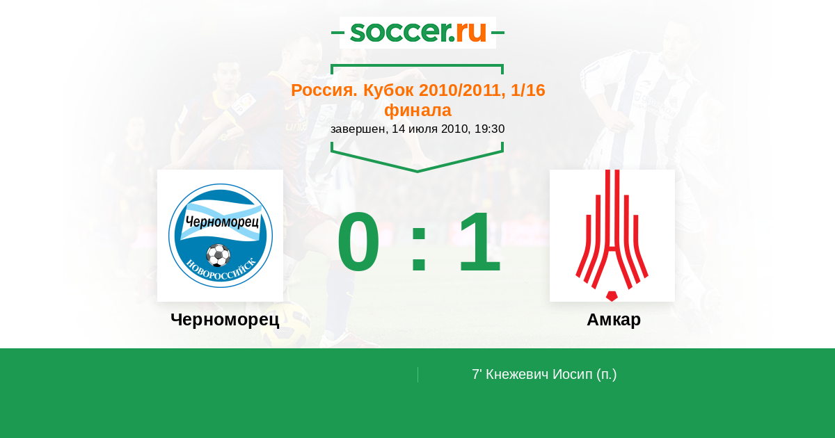 Черноморец - Амкар: обзор матча 14 июля 2010