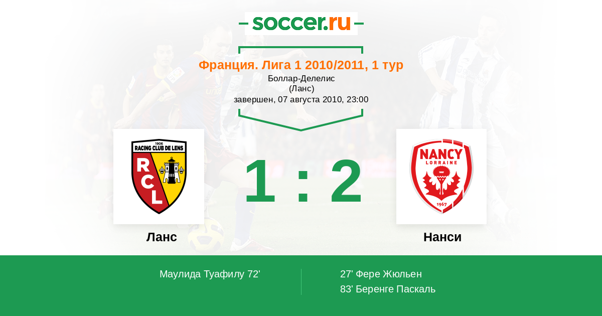 Ланс - Нанси: обзор матча 7 августа 2010