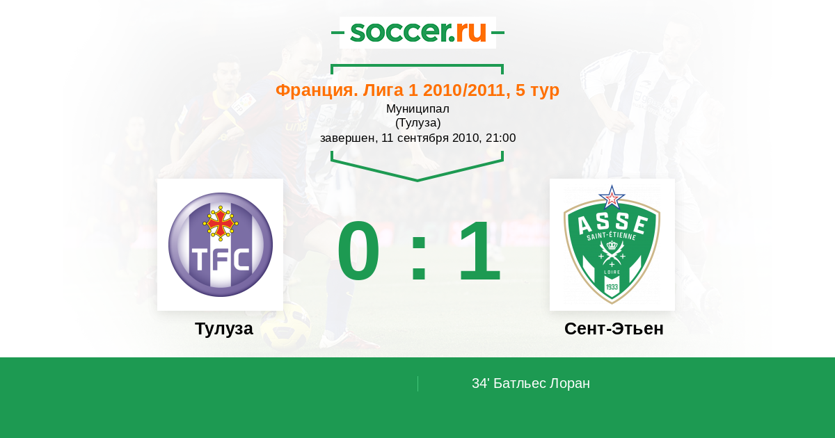 Тулуза - Сент-Этьен: обзор матча 11 сентября 2010