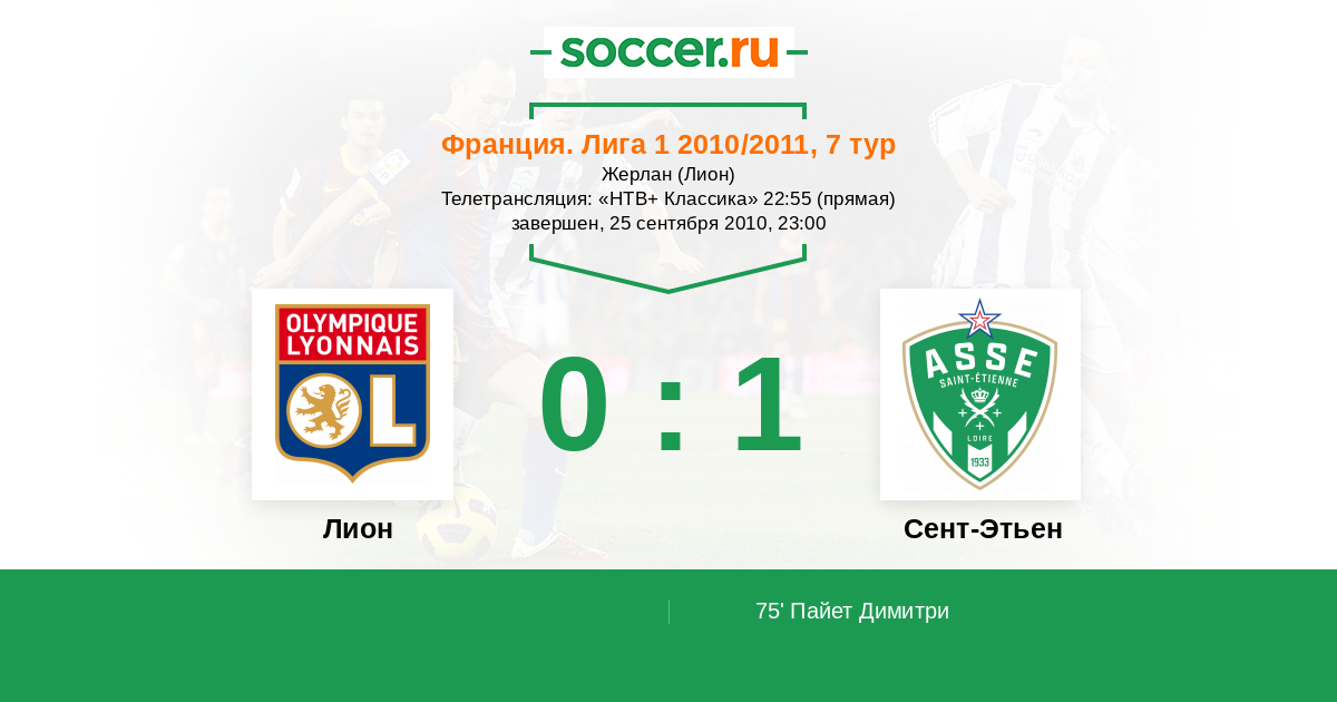 Лион - Сент-Этьен: обзор матча 25 сентября 2010