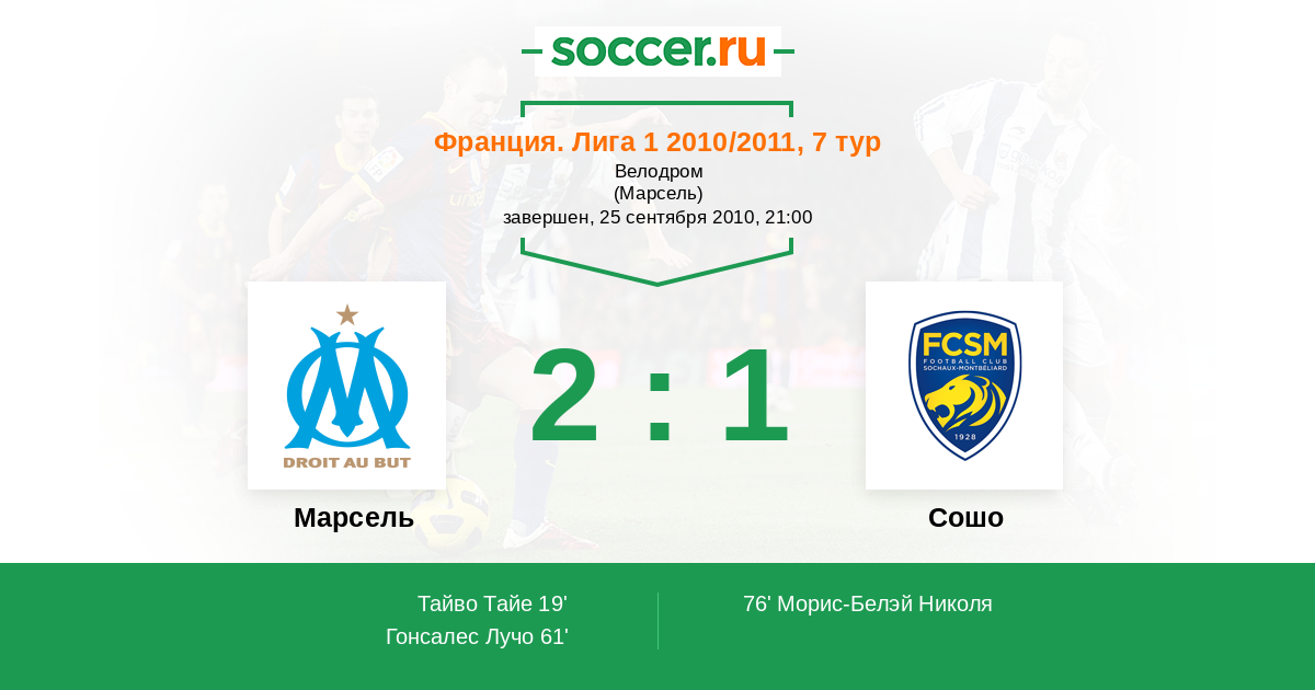 Марсель - Сошо: обзор матча 25 сентября 2010
