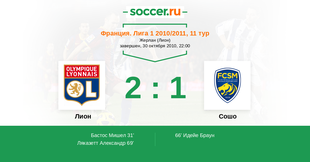 Лион - Сошо: обзор матча 30 октября 2010