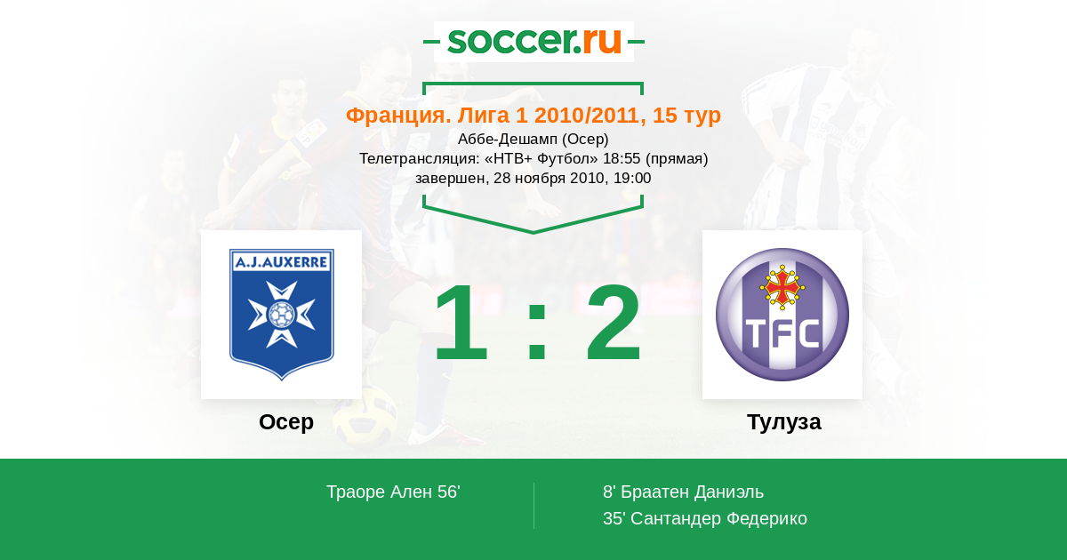 Осер - Тулуза: обзор матча 28 ноября 2010