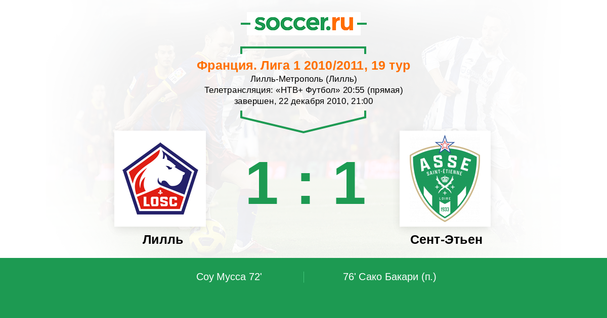 Лилль - Сент-Этьен: обзор матча 22 декабря 2010