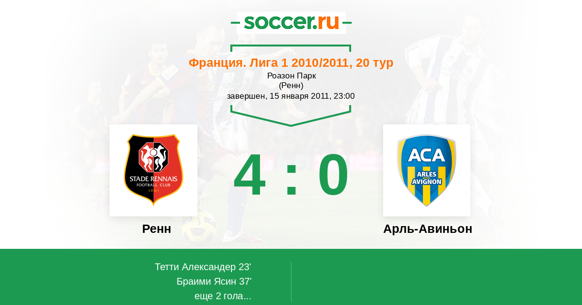 Ренн - Арль-Авиньон: обзор матча 15 января 2011