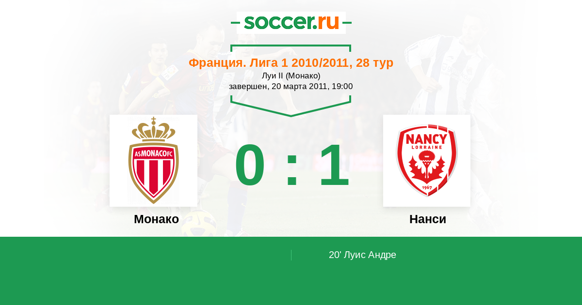 Монако - Нанси: обзор матча 20 марта 2011