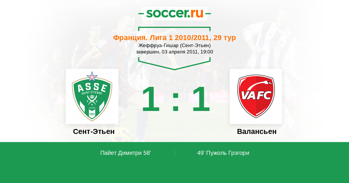 Сент-Этьен - Валансьен: обзор матча 3 апреля 2011
