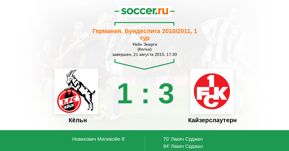 Кёльн - Кайзерслаутерн: обзор матча 21 августа 2010