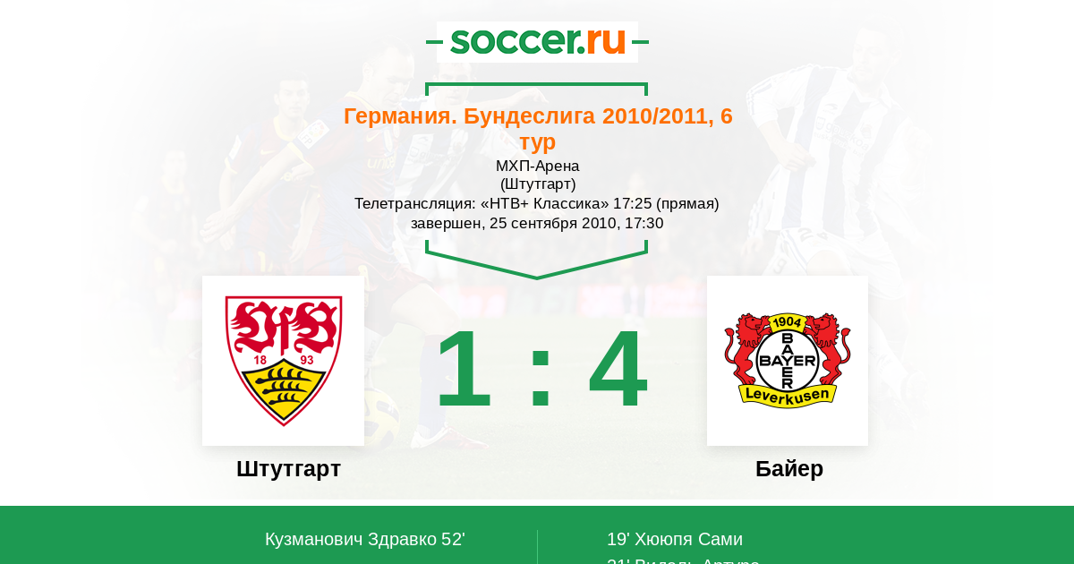 Штутгарт - Байер: обзор матча 25 сентября 2010