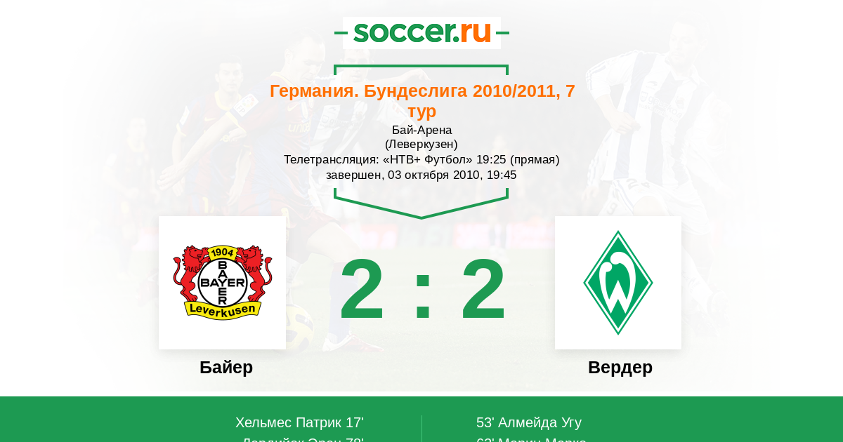 Байер - Вердер: обзор матча 3 октября 2010