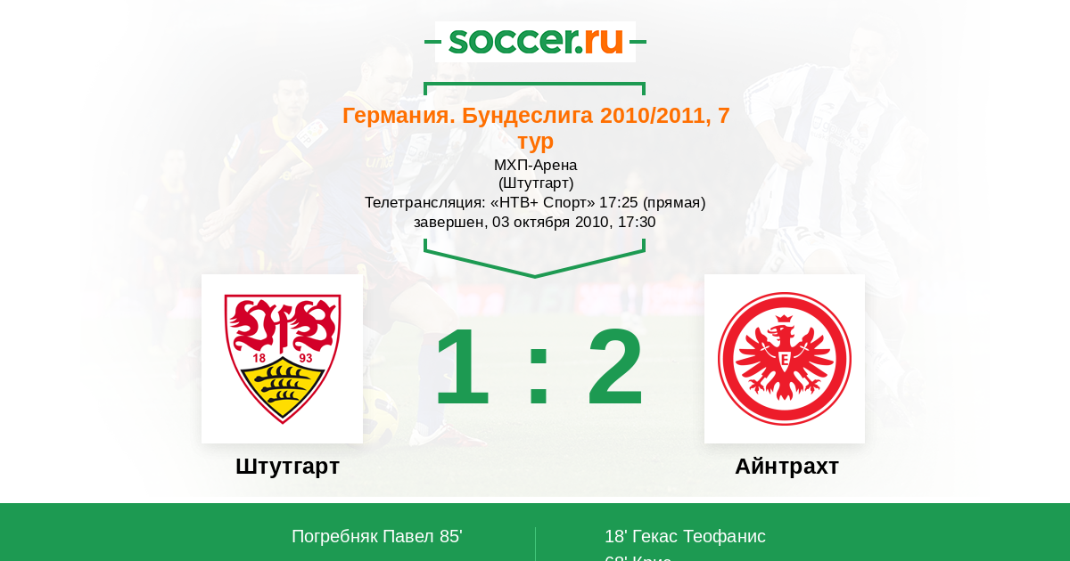 Штутгарт - Айнтрахт: обзор матча 3 октября 2010