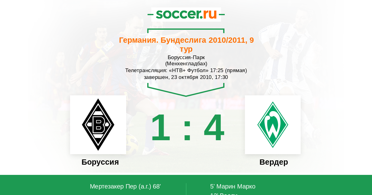 Боруссия - Вердер: обзор матча 23 октября 2010