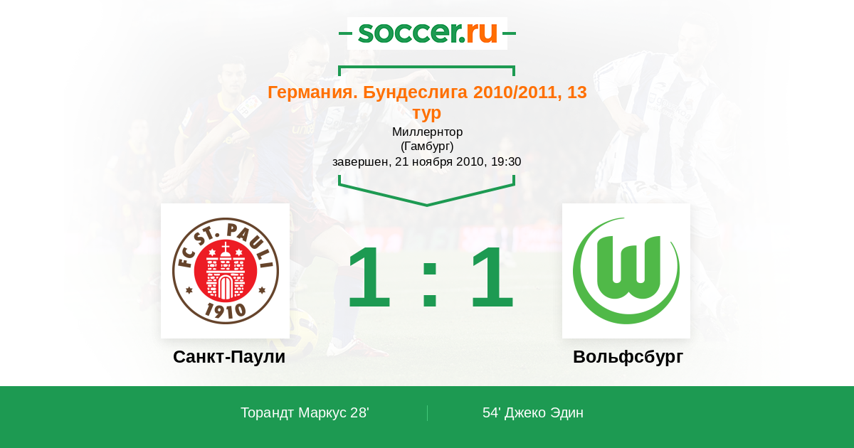 Санкт-Паули - Вольфсбург: обзор матча 21 ноября 2010