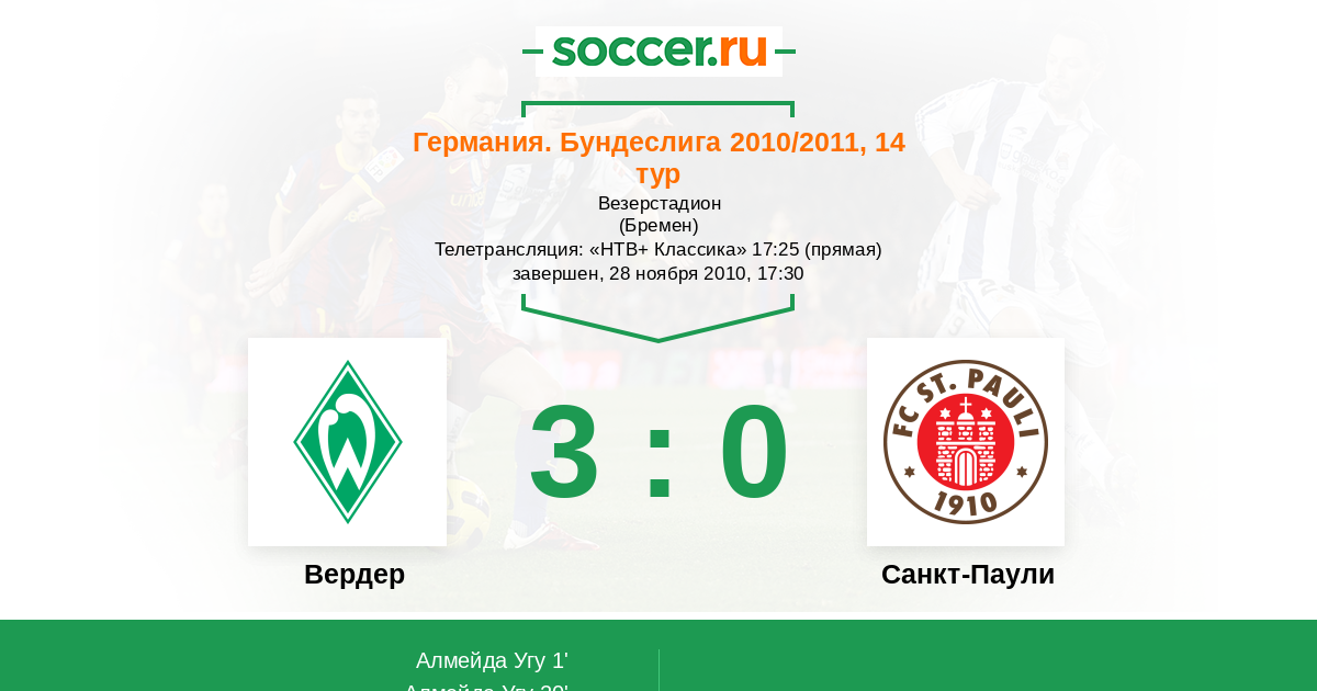 Вердер - Санкт-Паули: обзор матча 28 ноября 2010