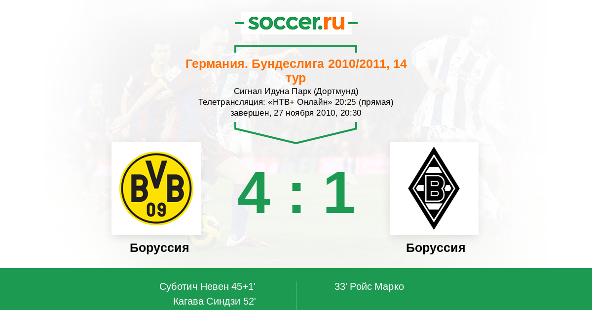 Боруссия Д - Боруссия М: обзор матча 27 ноября 2010