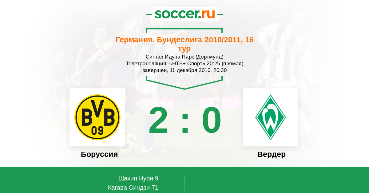 Боруссия - Вердер: обзор матча 11 декабря 2010