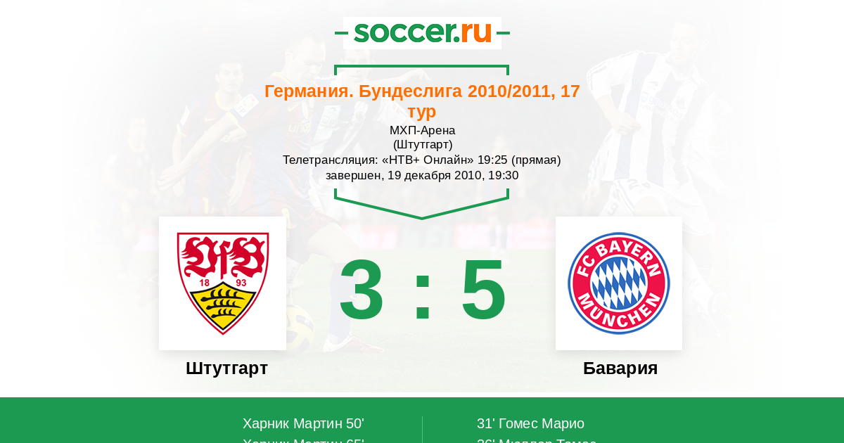 Штутгарт - Бавария: обзор матча 19 декабря 2010