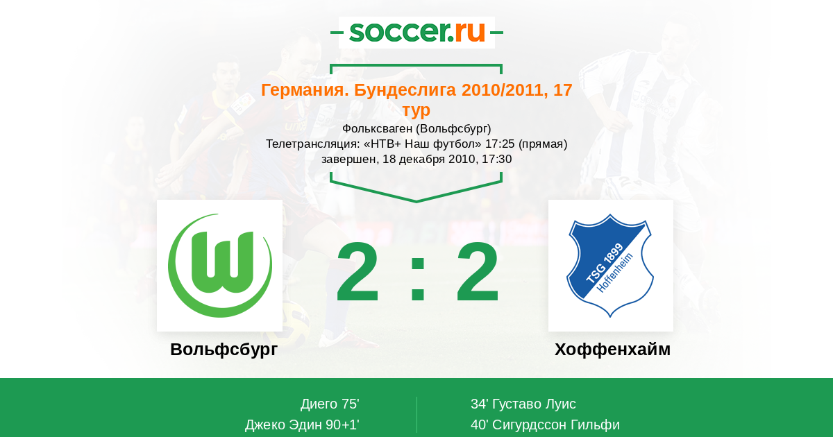 Вольфсбург - Хоффенхайм: обзор матча 18 декабря 2010