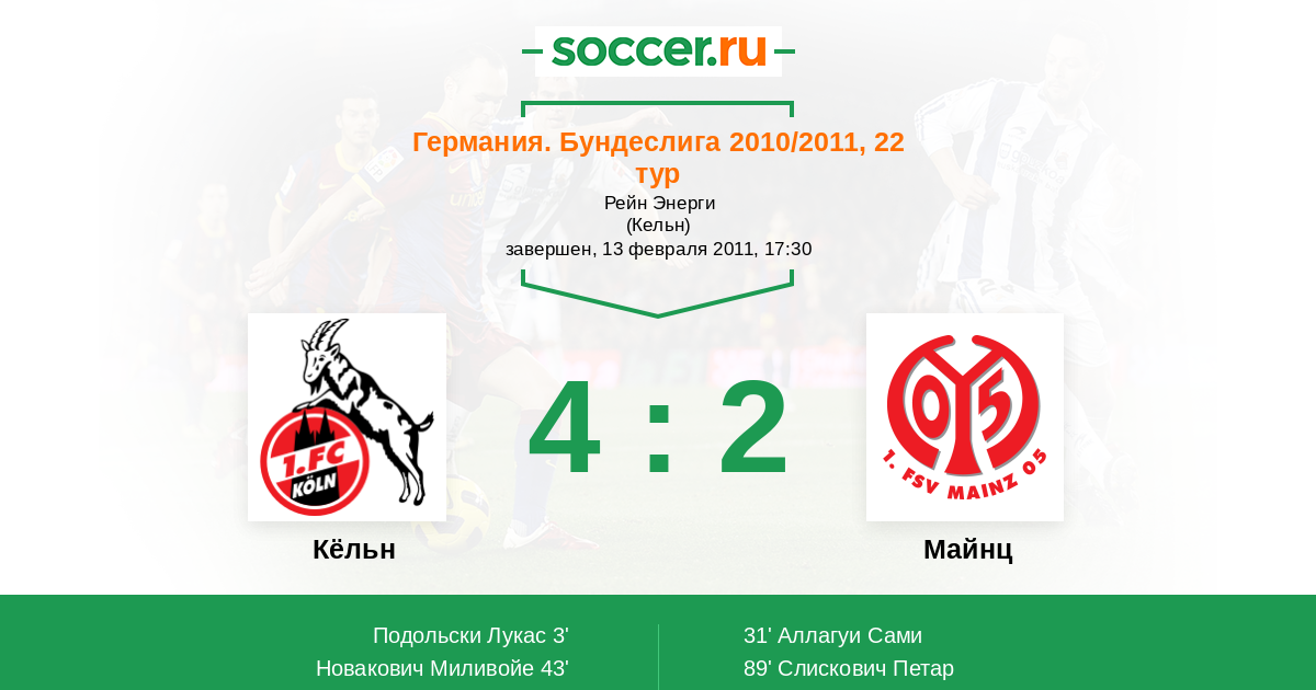 Кёльн - Майнц: обзор матча 13 февраля 2011
