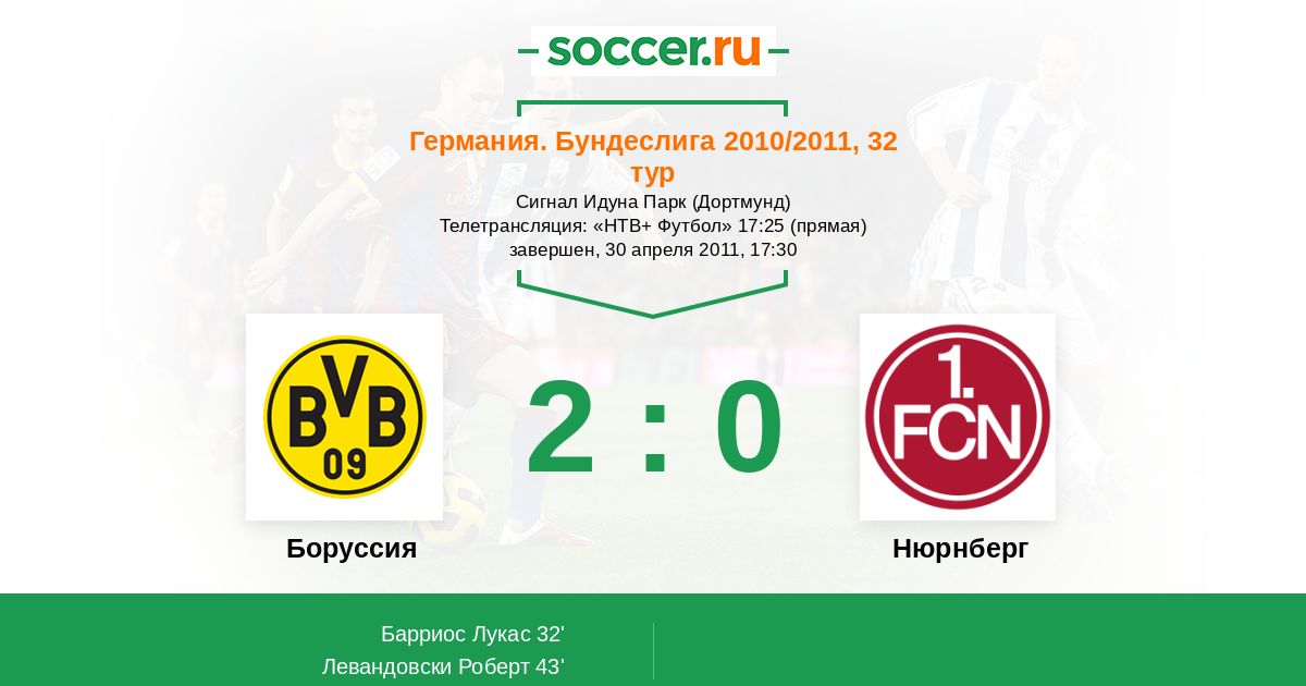 Боруссия - Нюрнберг: обзор матча 30 апреля 2011