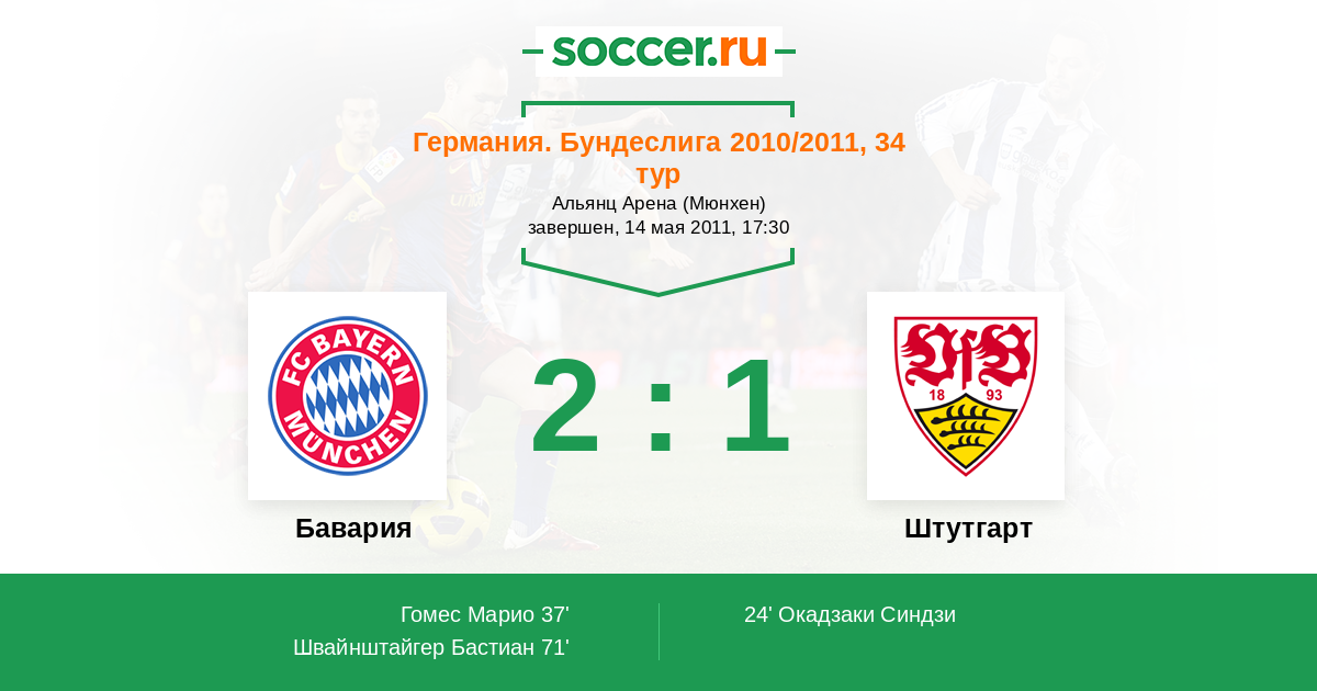 Бавария - Штутгарт: обзор матча 14 мая 2011