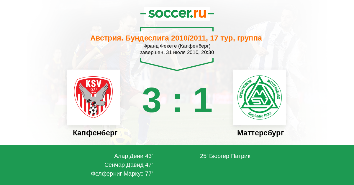 Капфенберг - Маттерсбург: обзор матча 31 июля 2010