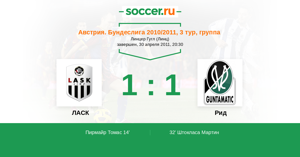 ЛАСК - Рид: обзор матча 30 апреля 2011