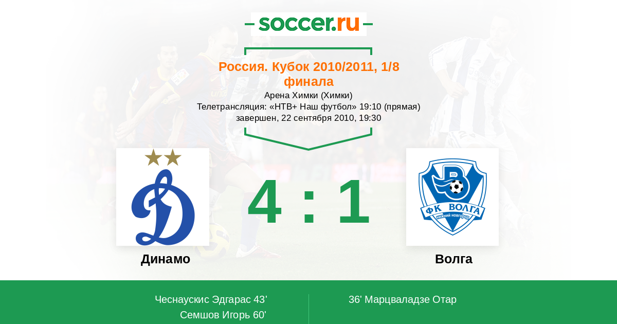 Динамо - Волга: обзор матча 22 сентября 2010