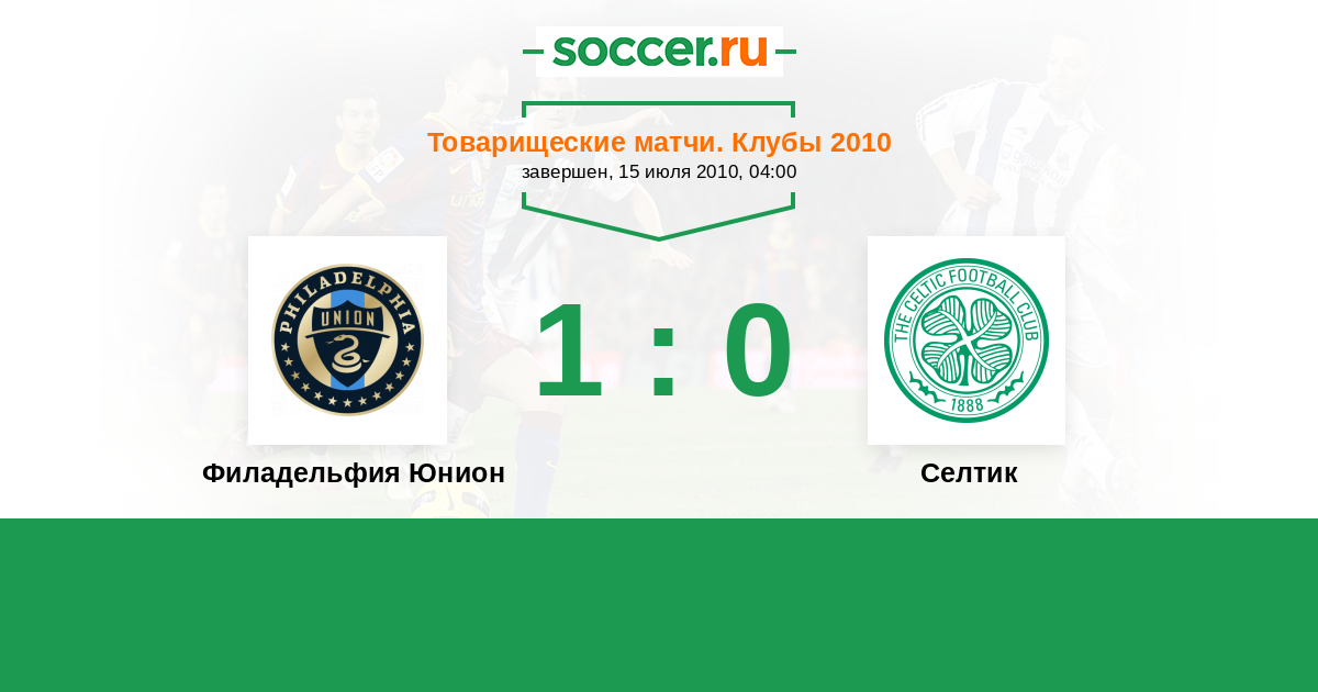 Филадельфия Юнион - Селтик: обзор матча 15 июля 2010