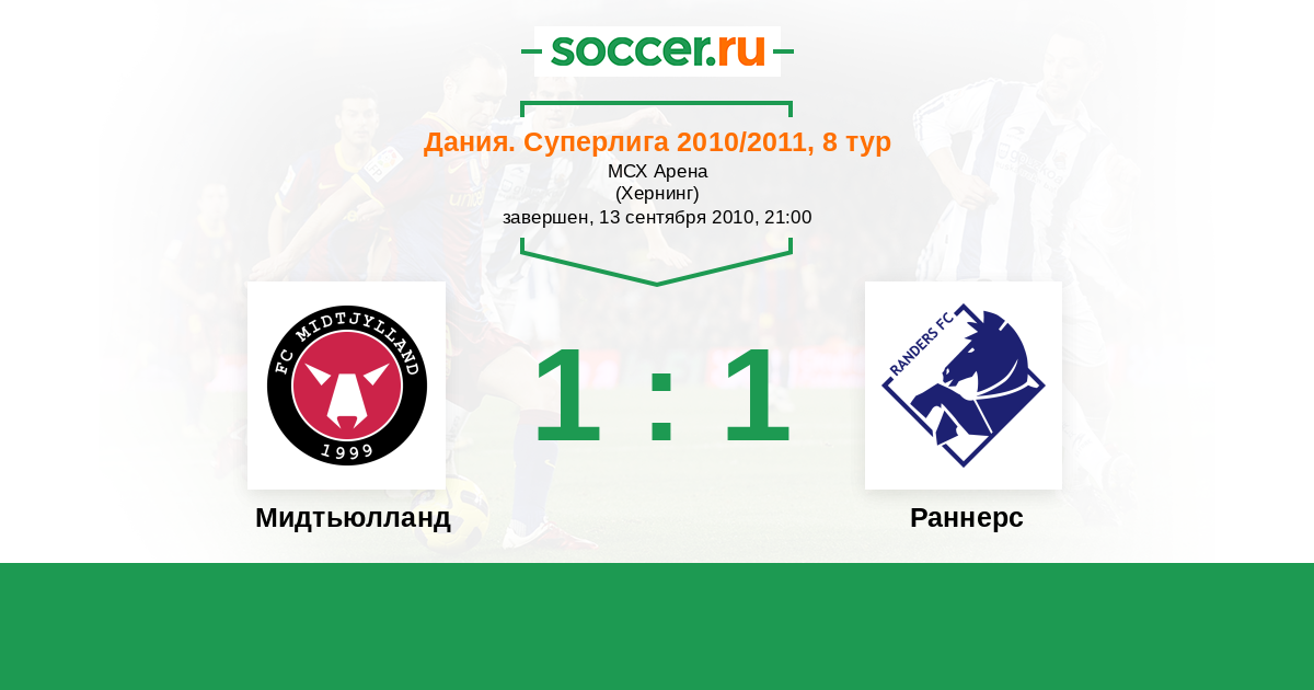 Мидтьюлланд - Раннерс: обзор матча 13 сентября 2010