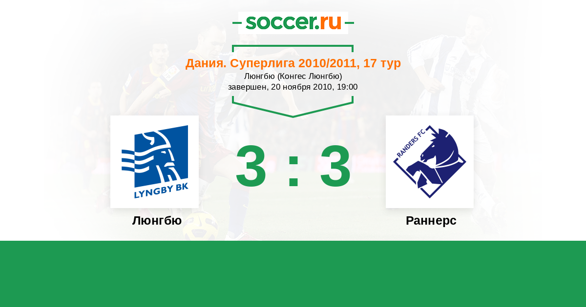 Люнгбю - Раннерс: обзор матча 20 ноября 2010