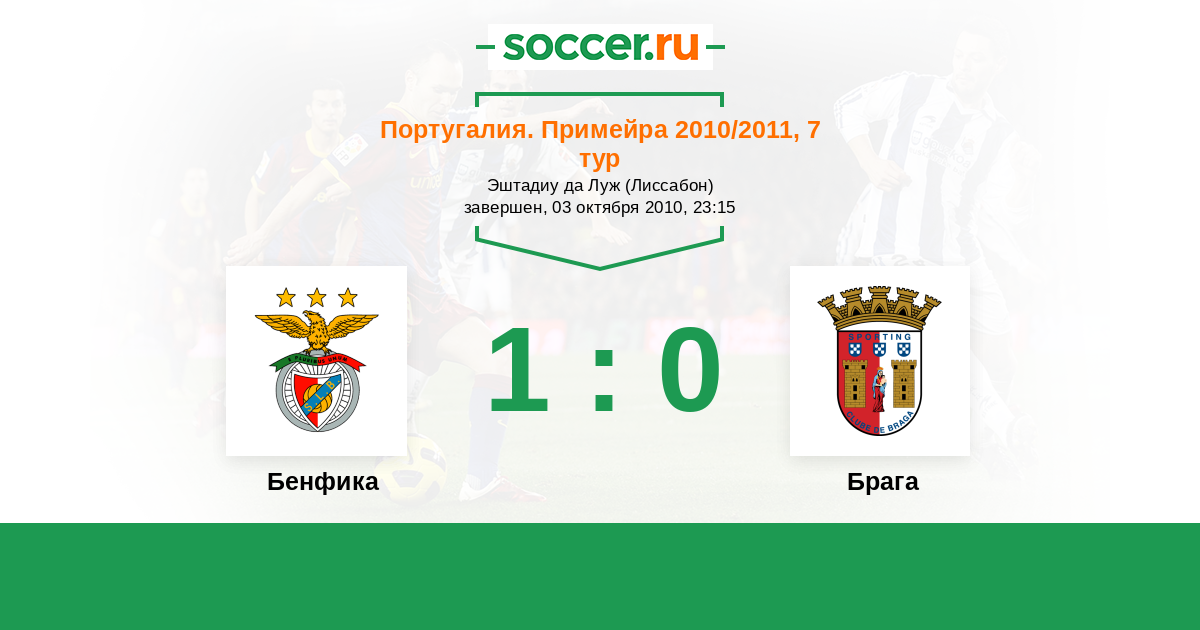 Бенфика - Брага: обзор матча 3 октября 2010