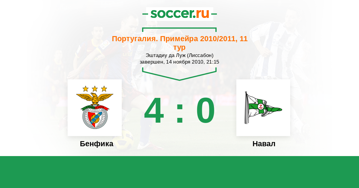 Бенфика - Навал: обзор матча 14 ноября 2010