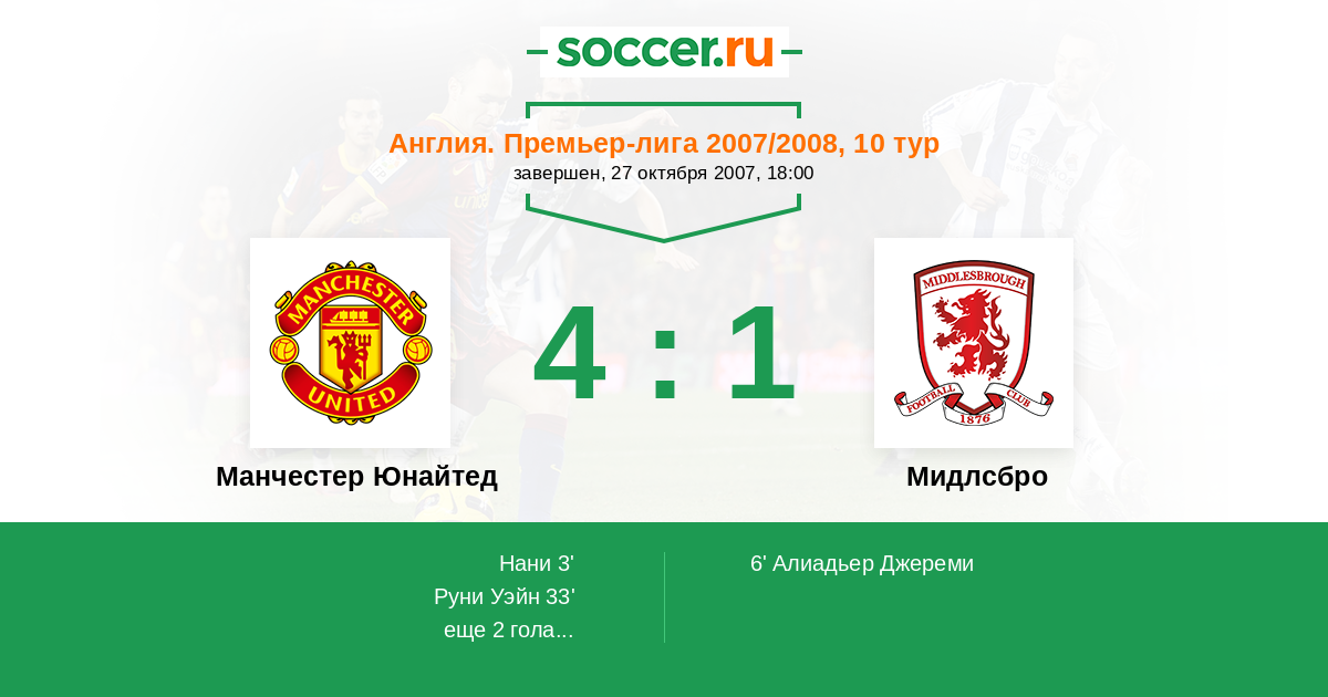 Манчестер Юнайтед - Мидлсбро: обзор матча 27 октября 2007