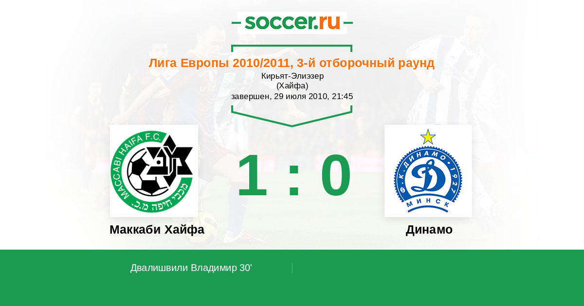 Маккаби Хайфа - Динамо: обзор матча 29 июля 2010