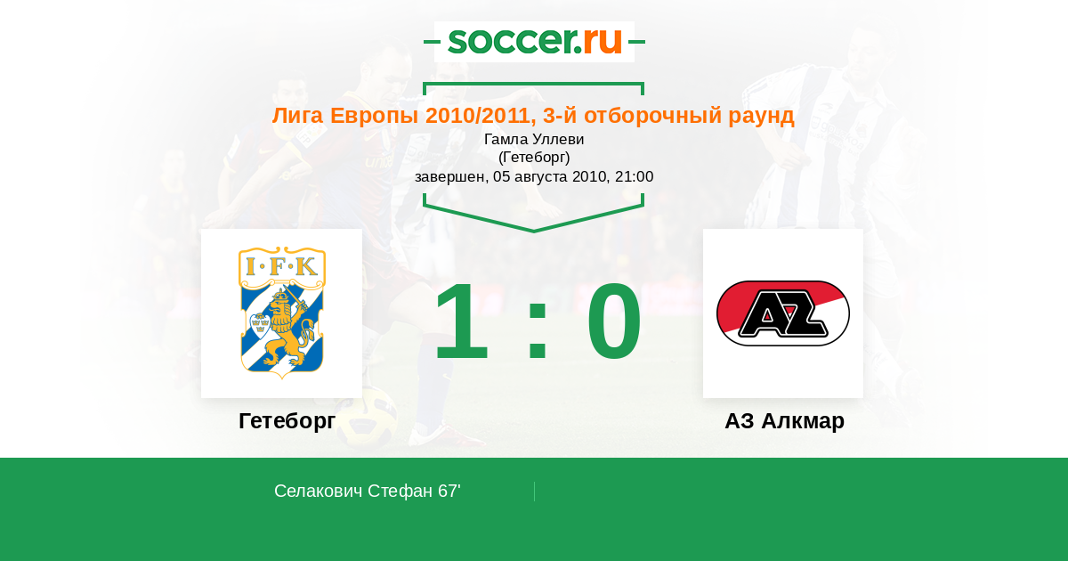 Гетеборг - АЗ Алкмар: обзор матча 5 августа 2010