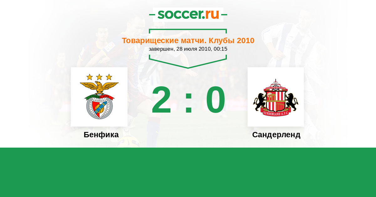 Бенфика - Сандерленд: обзор матча 28 июля 2010
