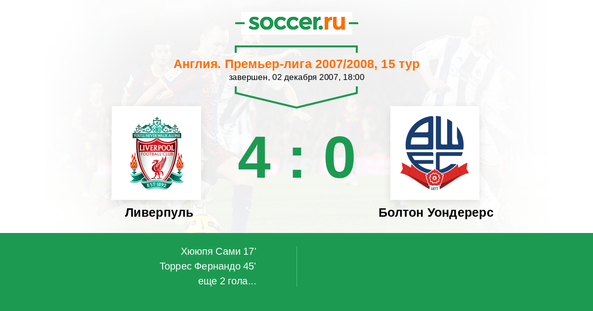 Ливерпуль - Болтон Уондерерс: обзор матча 2 декабря 2007