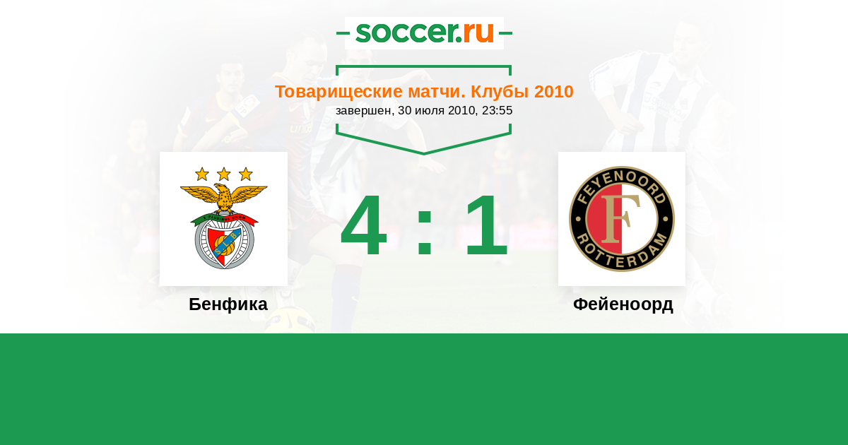 Бенфика - Фейеноорд: обзор матча 30 июля 2010