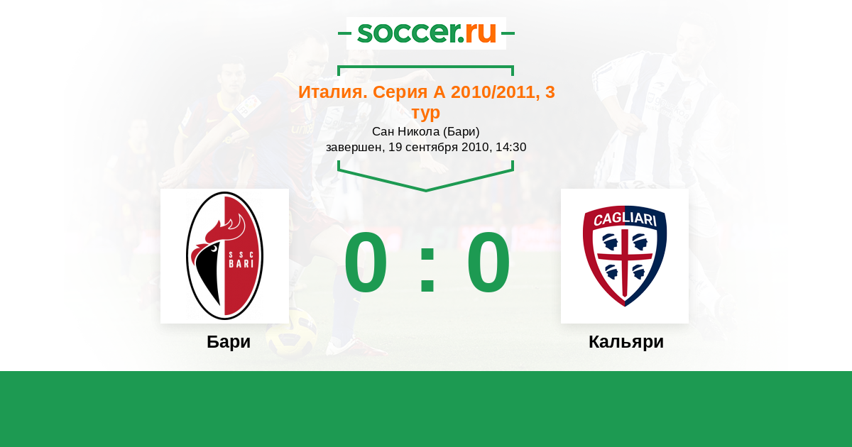 Бари - Кальяри: обзор матча 19 сентября 2010