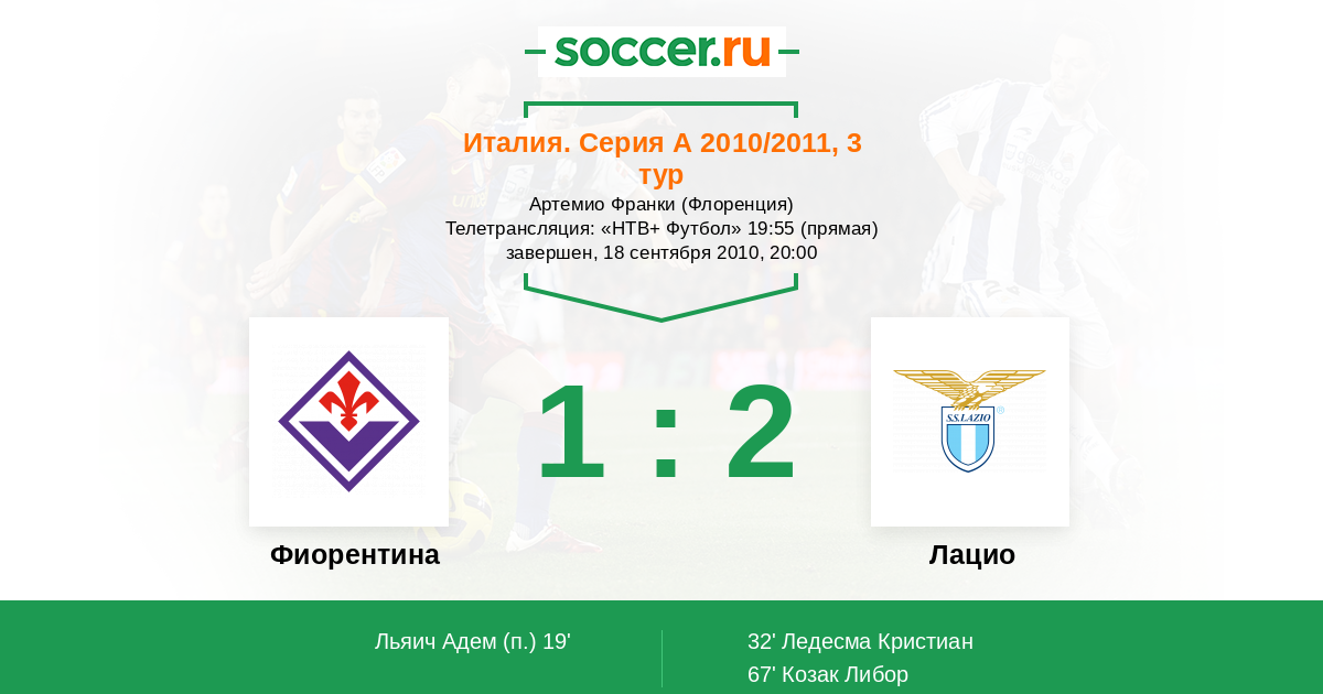 Фиорентина - Лацио: обзор матча 18 сентября 2010