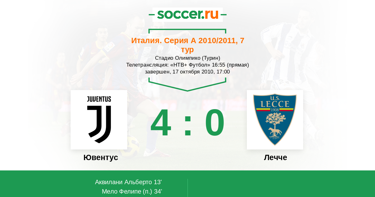 Ювентус - Лечче: обзор матча 17 октября 2010