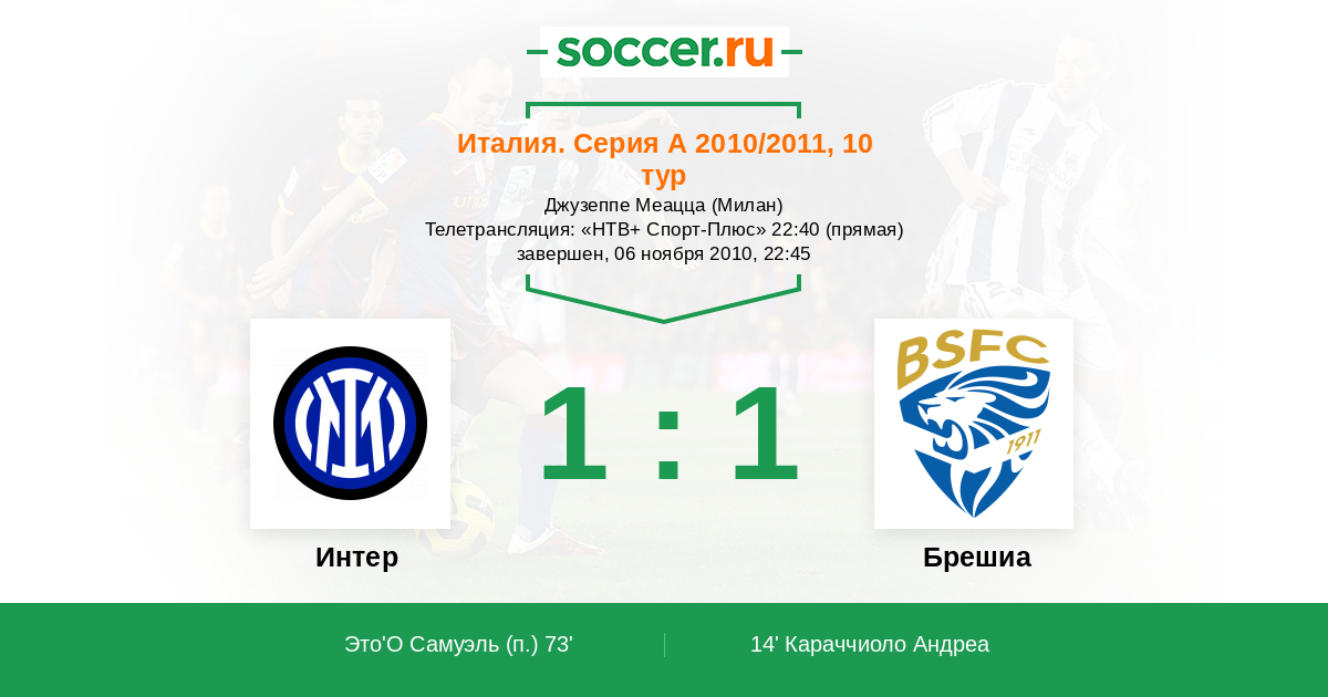 Интер - Брешиа: обзор матча 6 ноября 2010