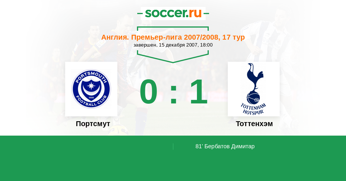 Портсмут - Тоттенхэм: обзор матча 15 декабря 2007