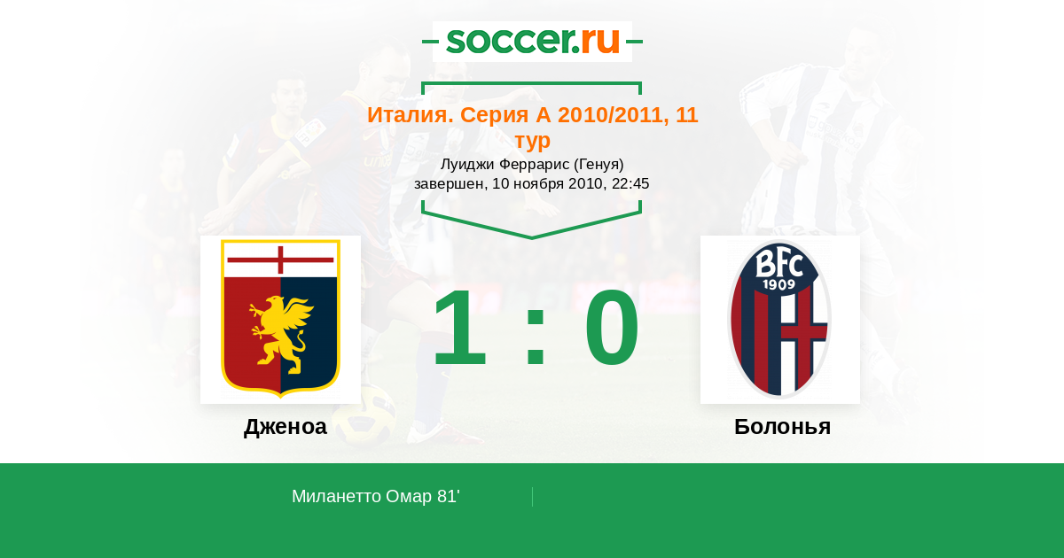 Дженоа - Болонья: обзор матча 10 ноября 2010